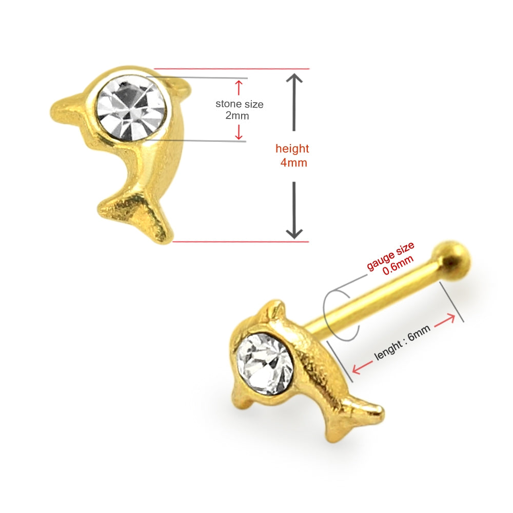 9K Jeweled Dolphin Ball End Nose Pin