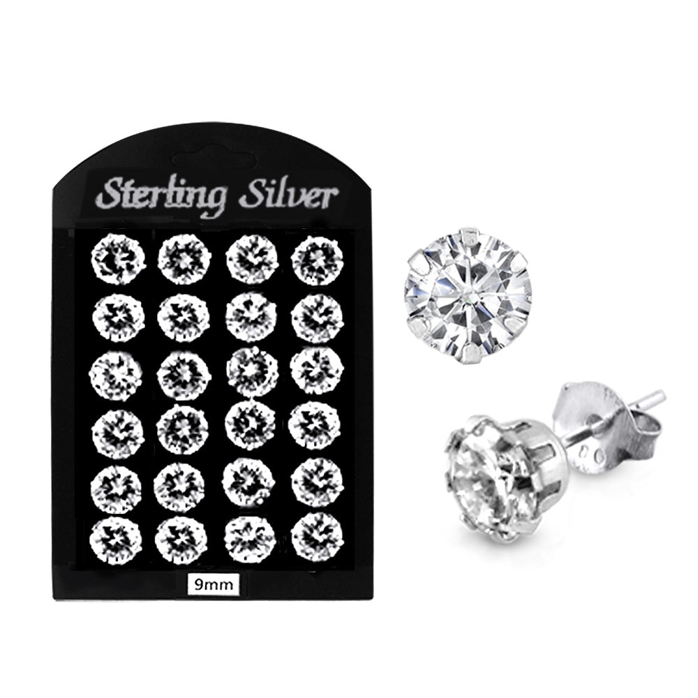 9MM CZ Round Ear Stud in 12 pair Tray