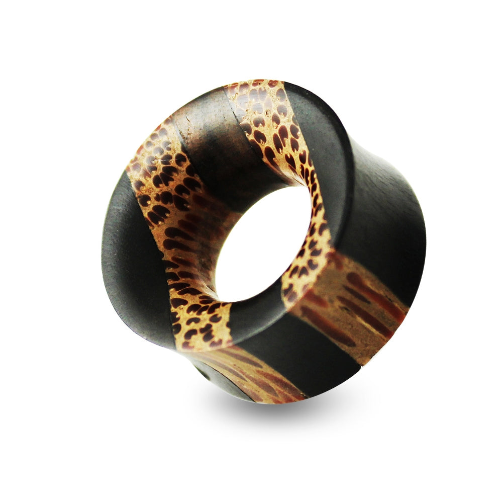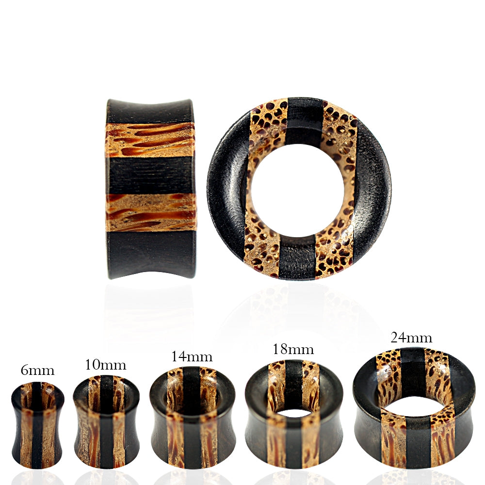 Double Flared Organic Iron and Palm Wood Tunnel Ear Gauges Plug