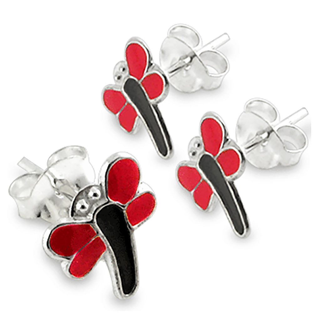 Multi Color Hand Painted Dragon Fly Silver Earring Body Jewelry
