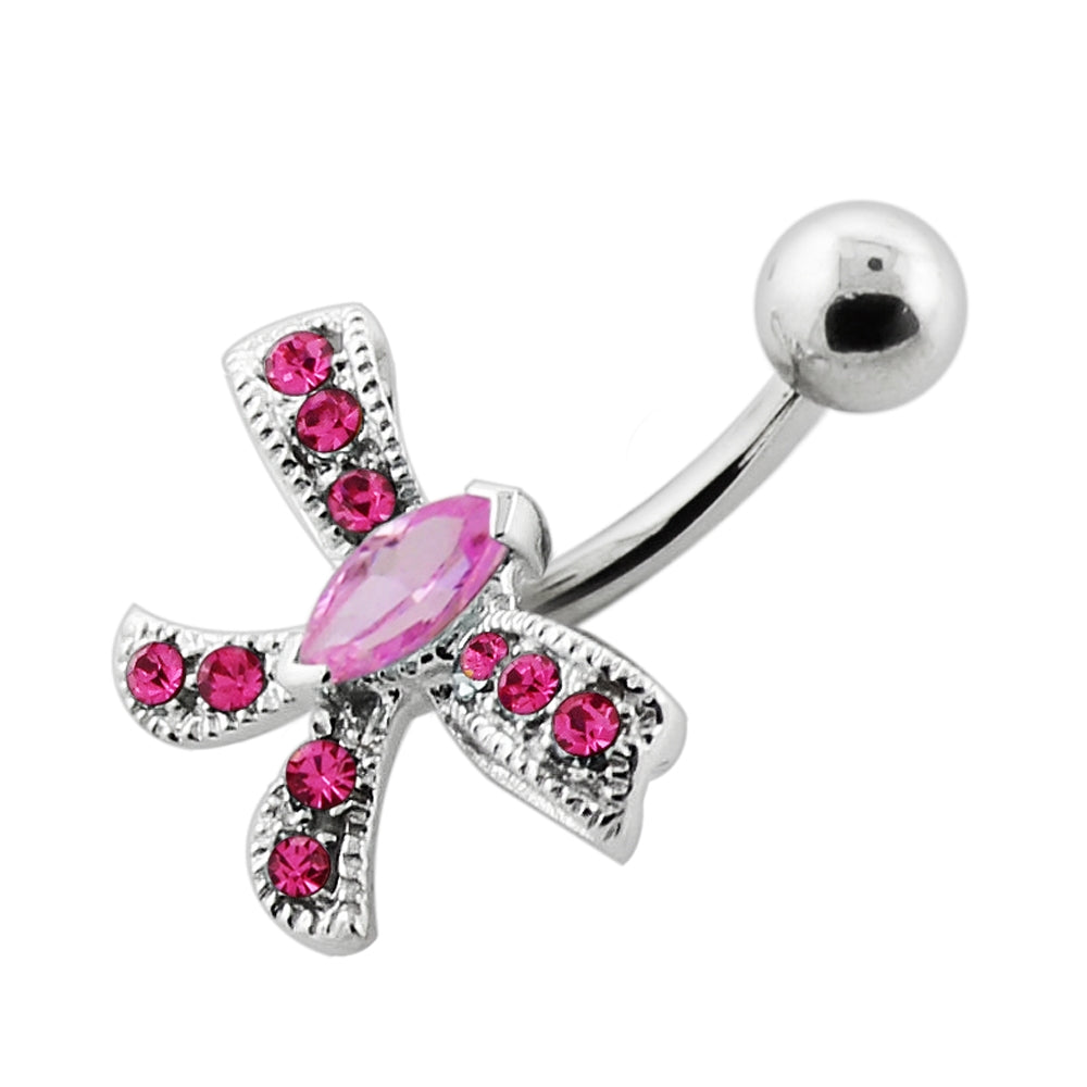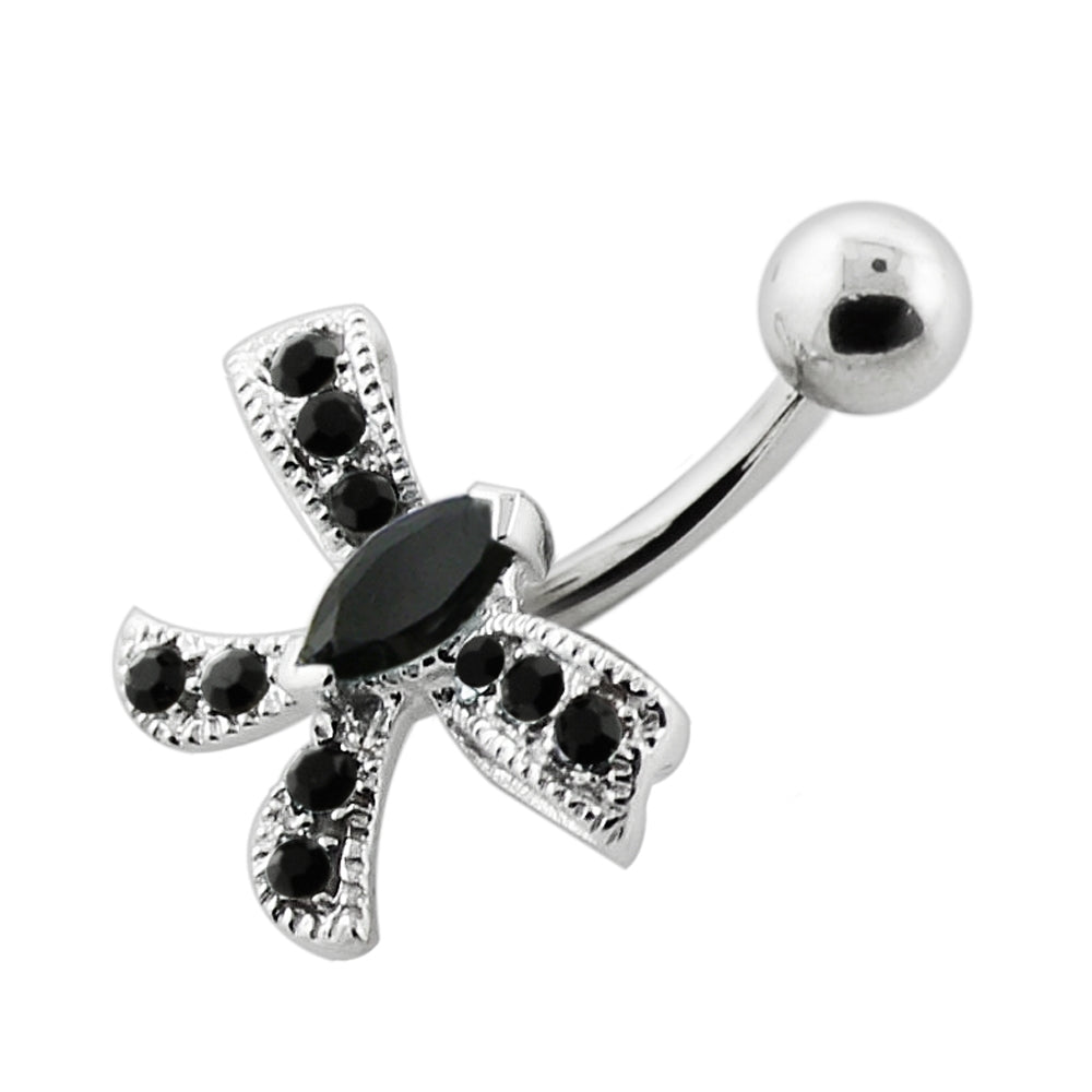 Jeweled Bow Silver Navel Bar